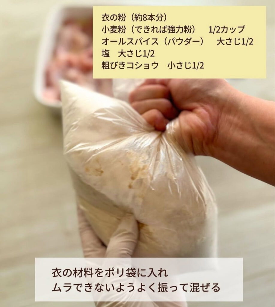 手羽元を開いた部分にもバッター液と粉をたっぷりとつけてね!