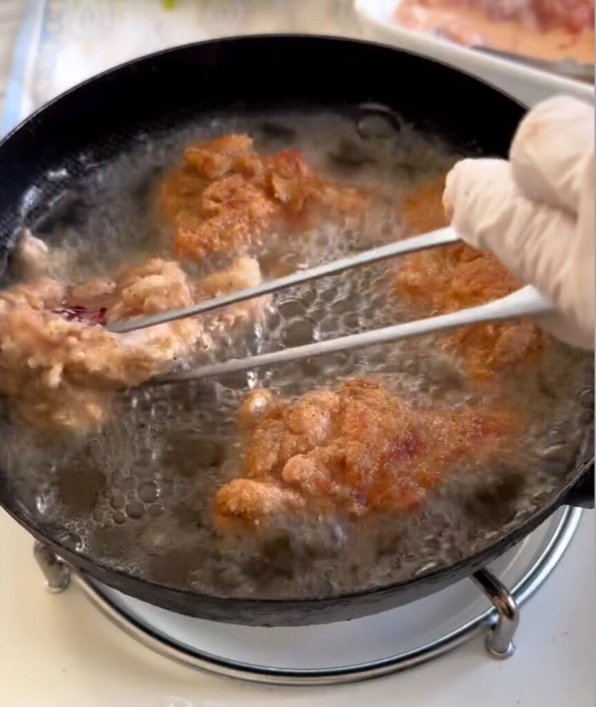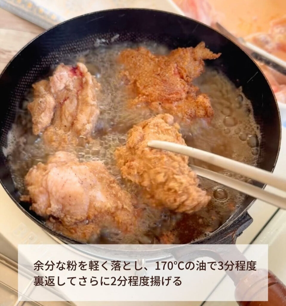 チキンが2/3沈めるくらいの油量&鍋の大きさがおすすめです◎