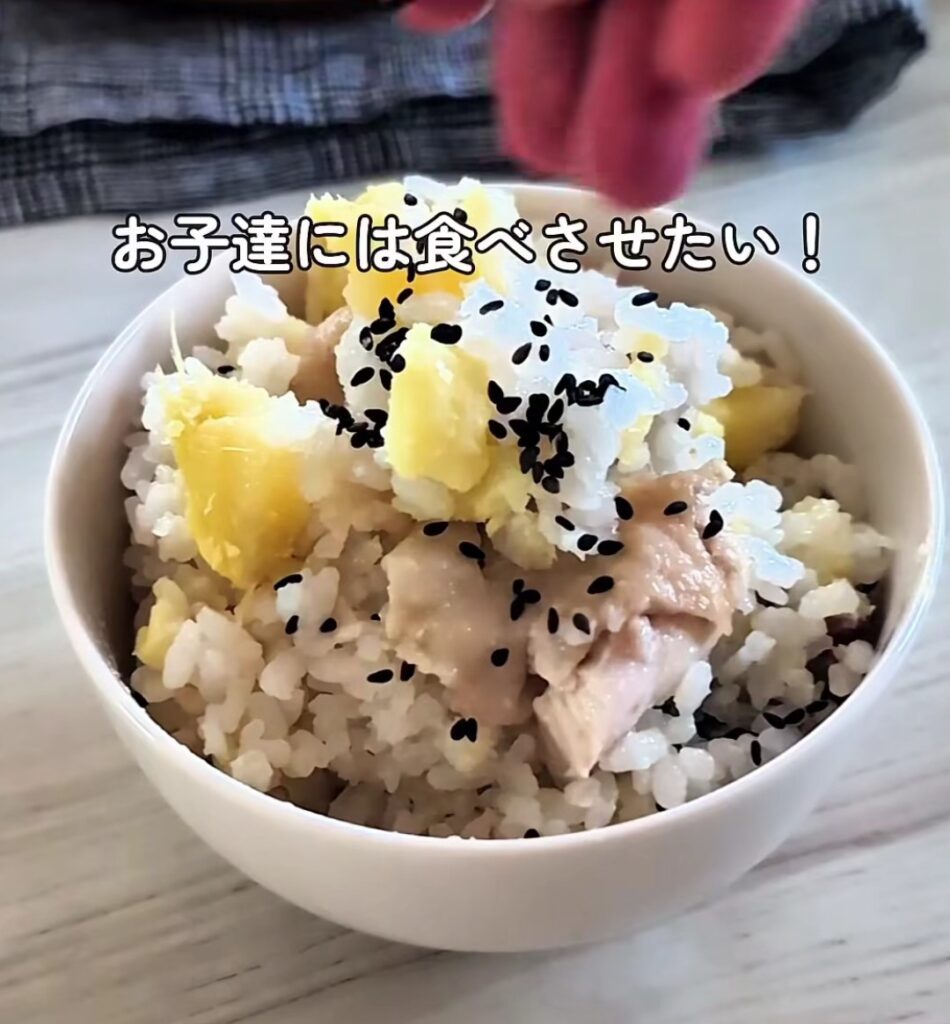 でも、子どもには食べさせたい!と作ってみたら、とってもおいしく食べられた芋ごはんです。