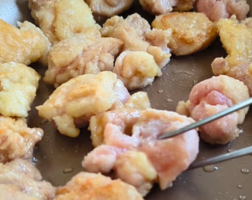 鶏肉に絡めながら、水分を飛ばしながら炒める。
